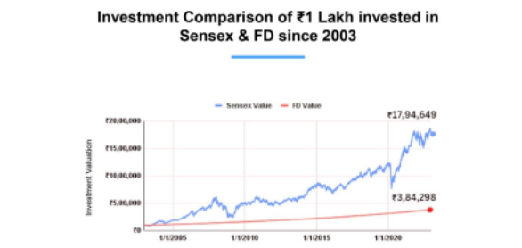 A standout statistic within this narrative is the noteworthy performance of an INR 1 lakh investment in the S&P BSE Sensex in 2010, evolving into INR 2.8 lakhs by FY2022, exhibiting an impressive CAGR of approximately 12%. This signifies that investors who embarked on this journey 12 years ago have reaped substantial returns, showcasing the prowess of a diligent long-term approach.